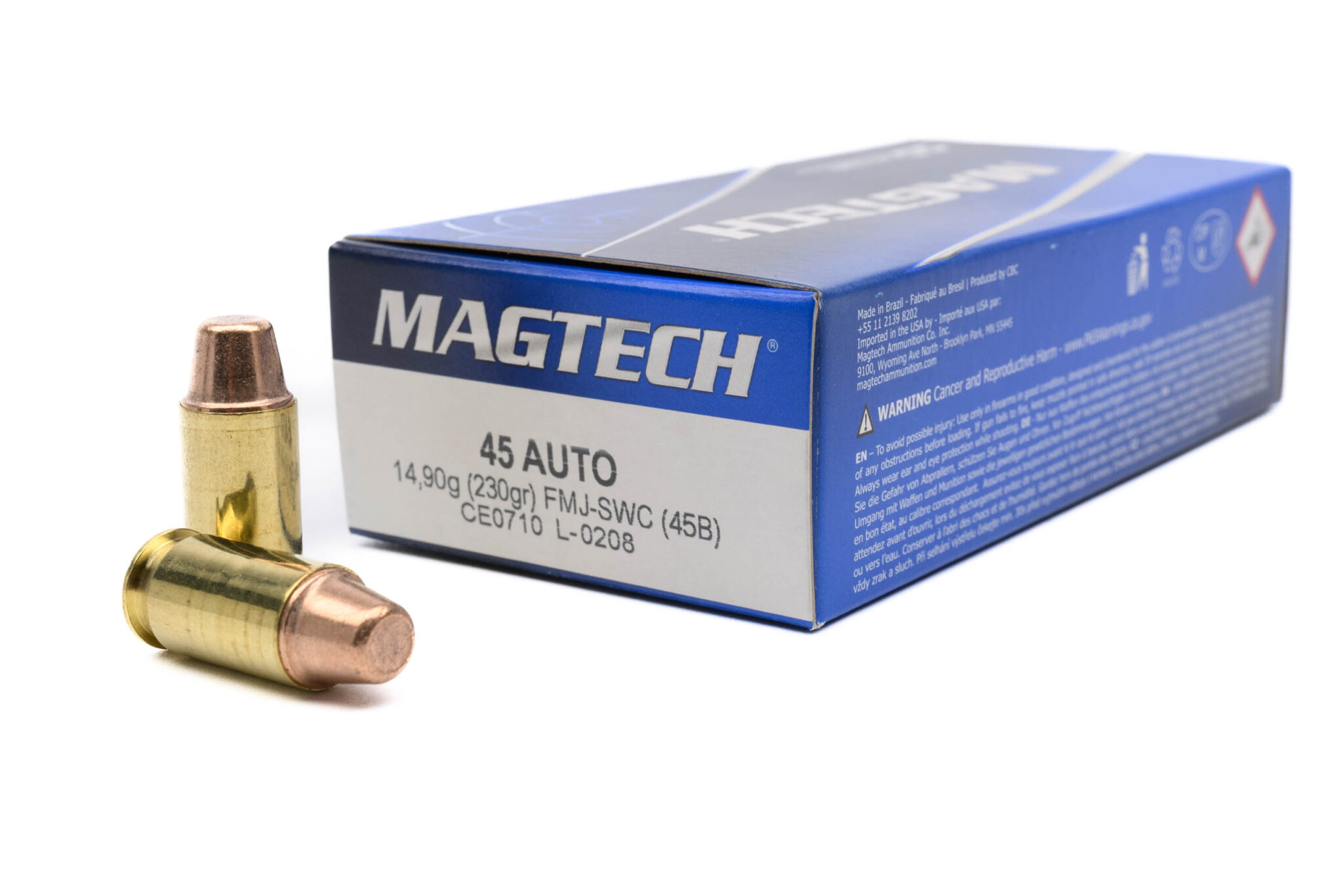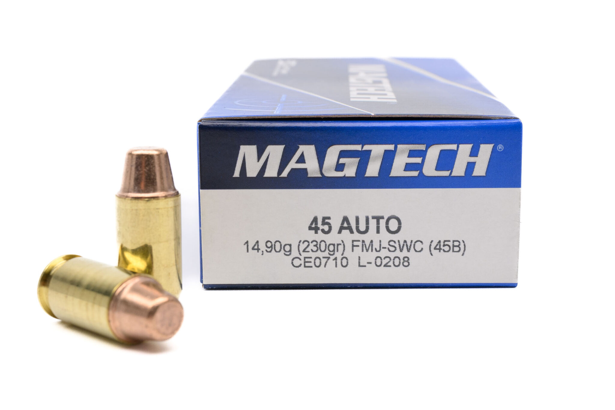 - 50 Patronen Magtech .45 ACP FMJ Semi-Wadcutter 230grs Munition.