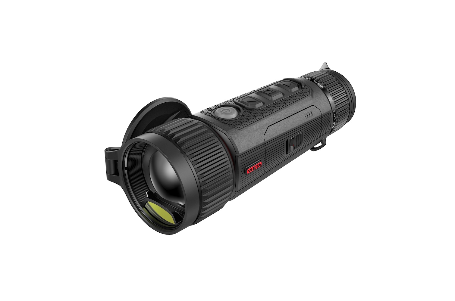 Die geräuschlose Bedienelemente des Vista ermöglichen eine diskrete Nutzung bei Dunkelheit, während die drehbare Augenmuschel das Eindringen von Licht blockiert. Die vollständig umhüllte TPU-Kunstlederstruktur sorgt für einen angenehmen Griff und ermöglicht müheloses, längeres Beobachten.