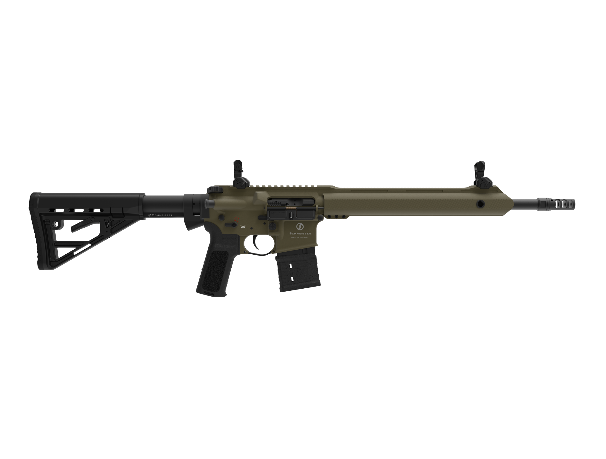 Die Schmeisser AR15-M4FL Sport 14,5″ OD Green ist eine Selbstladebüchse im Kaliber .223 Remington, konzipiert für den sportlichen Einsatz. Mit ihrem 14,5″ (ca. 37,0 cm) langen, freischwingenden Lauf und dem beidseitig bedienbaren Design bietet sie Präzision und Ergonomie für anspruchsvolle Schützen.