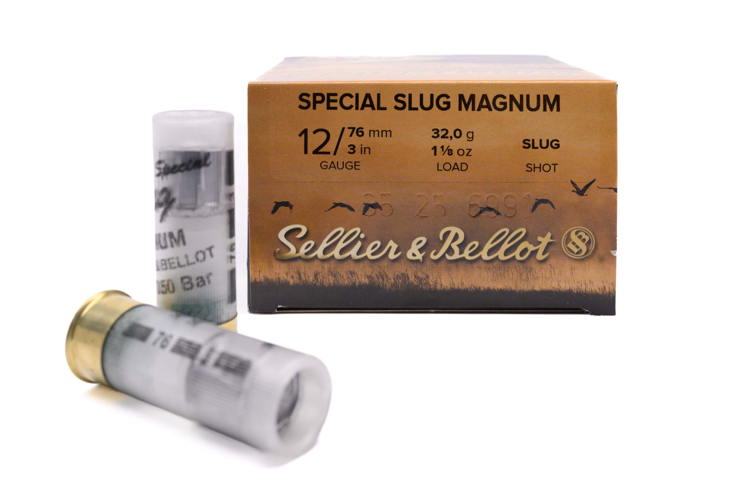 Die Sellier & Bellot Special Slug Magnum 12/76 ist eine leistungsstarke Flintenlaufpatrone mit 32 g Einzellaufgeschoss. Das Special Slug mit integriertem Stabilisator sorgt für eine stabile Flugbahn, hohe Energieabgabe und präzise Wirkung auf kurze bis mittlere Distanzen – ideal für jagdliche Anwendungen, wo gesetzlich zulässig.