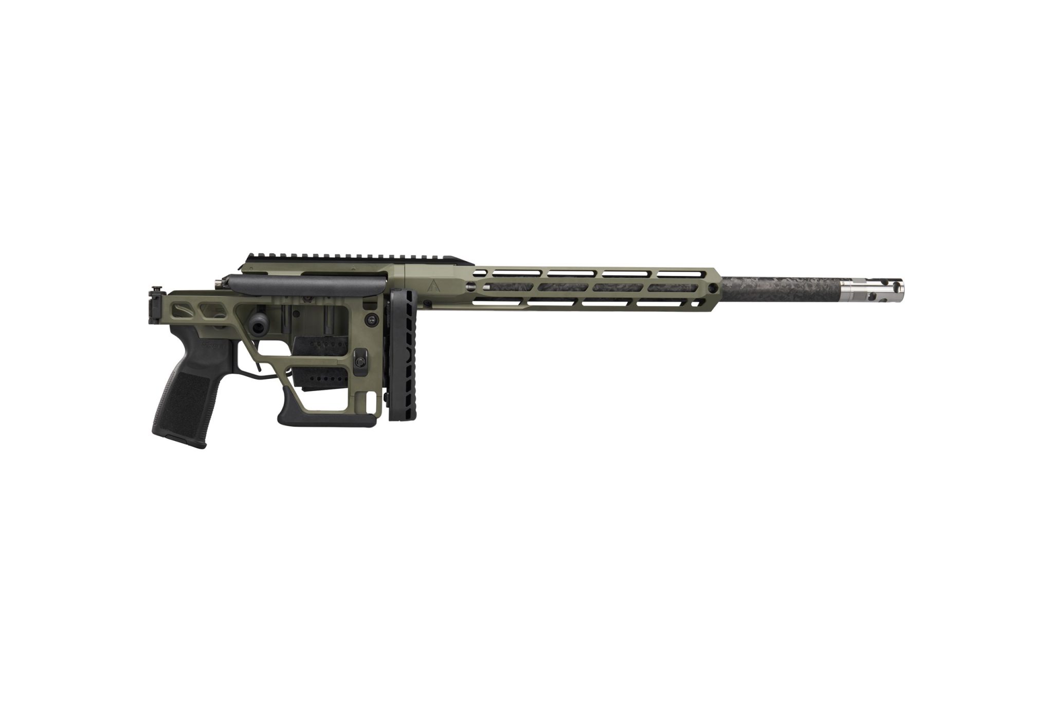 Vielseitige Repetierbüchse im Kaliber .308 Win mit 16″ (ca. 40,6 cm) Carbonfaser-Lauf, verstellbarem Klappschaft und M-LOK-Handschutz für präzises Schießen bei der Jagd.