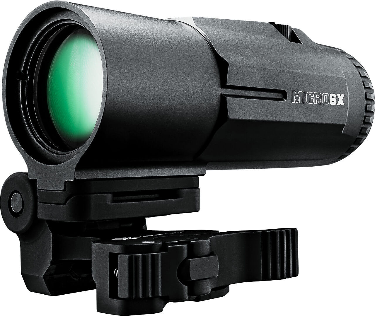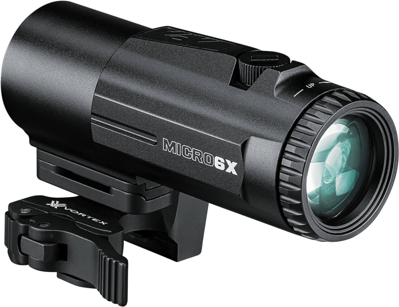 Der Vortex Micro 6x Magnifier erweitert die Einsatzmöglichkeiten von Rotpunkt- und Holografievisieren durch eine kompakte 6-fache Vergrößerung. Mit seinem leichten und robusten Design eignet er sich ideal für den schnellen Wechsel zwischen Nah- und Mittelstreckenzielen. Die einfache Montage und die vielseitigen Anpassungsmöglichkeiten machen ihn zu einem wertvollen Zubehör für anspruchsvolle Schützen.