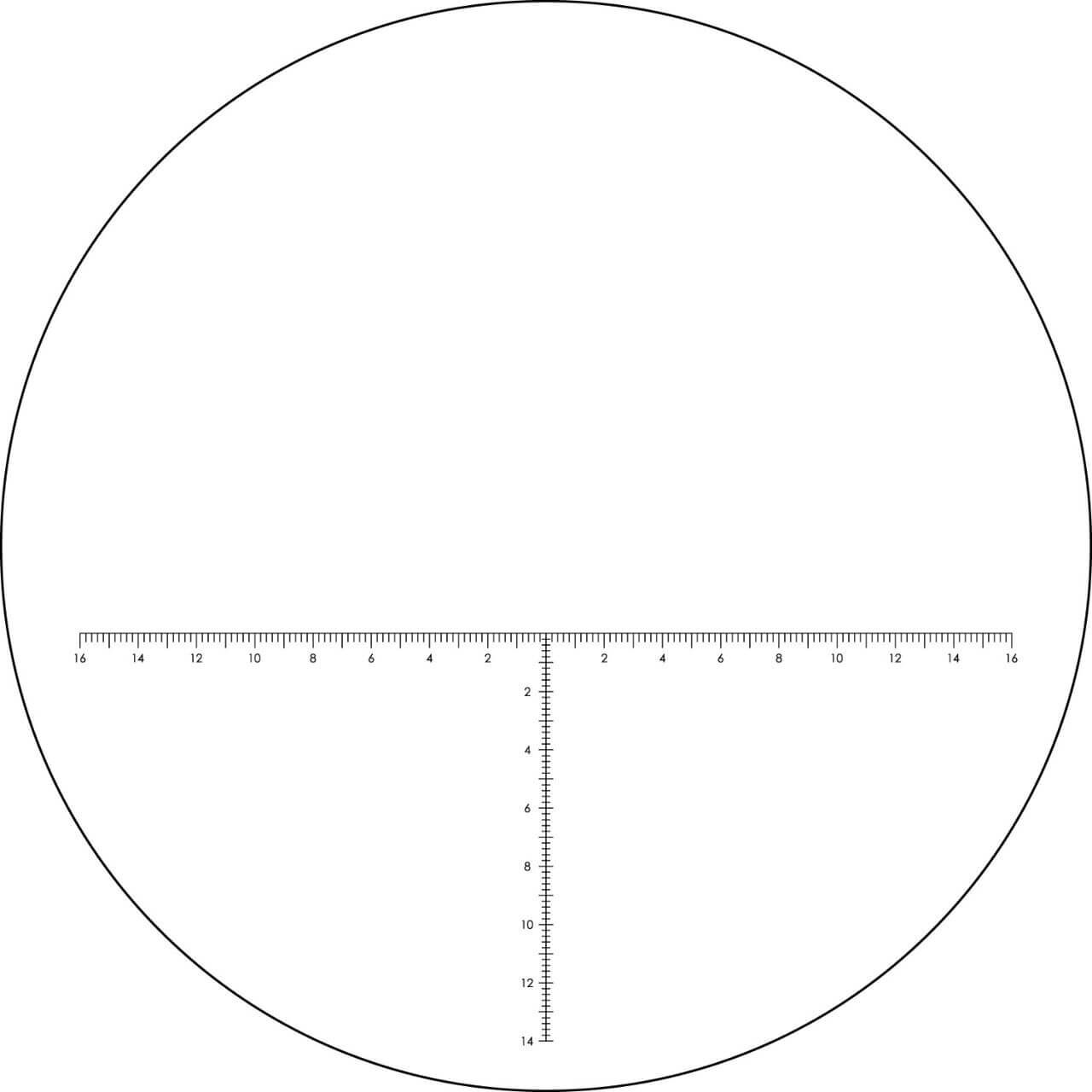 - MRAD-basiertes Absehen mit Hashmarkierungen zur Entfernungsmessung, Haltepunktbestimmung und Windkorrektur.